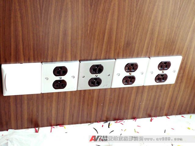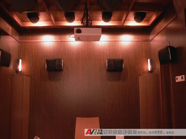 視聽室后部的照明燈具均采用合金壓鑄工程燈,一是堅固厚實的合金外殼不會因共振而引起雜音,二是單方向照明可避免光線直射到屏幕上影響畫面效果,將來在看電影時邊找碟和邊看包裝盒上的劇情介紹也很方便。