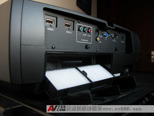 在散熱設計方面,愛普生EH-TW4500仍舊采用前置主動式散熱設計,從機身正面就可以看到寬大的散熱孔,而在機身后部,也為該款產品配備了相應的可更換的防塵網,以提高產品的使用壽命。
