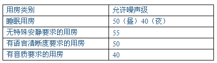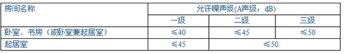 (一) 建筑物各類主要用房的允許噪聲級不應大于下表規定。