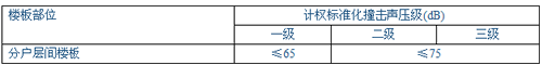 注:當確有困難時,可允許三級樓板計權標準化撞擊聲壓級小于等于85dB,但在樓板構造上應預留改善的可能條件。