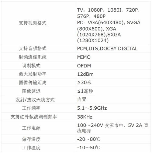 無線HDMI技術指標:
