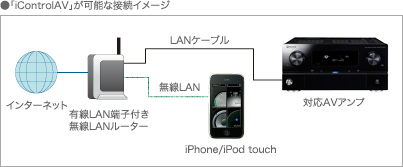 註: AV 環繞擴大機必須連接至無線 LAN 網路中的有線 LAN,以接收來自iPhone/ iPod Touch 的遙控指令
