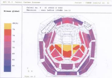 舞臺上的活動反射板可以調整距離舞臺面的高度(17m,14m,或9m),根據不同的音樂風格可以調節早期反射聲和后期混響聲的比例(如同相機鏡頭的變焦)。大量的計算機和計算機模擬工作促進了設計階段的調整和改進工作。