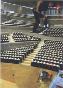 盡管電腦模擬對制定決策相當有幫助,但是它仍然基于聲線跟蹤技術,忽略了三維空間對聲音擴散的影響。在模擬用的三維模型中,很多幾何形狀上的變化被簡化或忽略。聲音在座位區的掠射衰減過程很難用計算機模擬完成。因此,在經過大氣吸聲矯正的條件下進行了1:10縮尺模型測試。(見下圖)符合國際ISO3382標準。