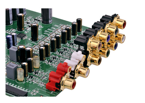 192kHz 24bit數/模轉換器,采用高檔數/模轉換芯片CS4398作為立體聲DOWNMIX輸出,設計動態范圍在120dB,THD+N 107dB,信噪比高達110dB以上;采用CS4382A作為7.1模擬聲道的數/模轉換器,設計動態范圍114dB,THD+N 100dB,信噪比110dB以上;使用了具有“金手指”之稱的日本原廠電解液制作音頻專用電容;運放則采用美國德州儀器(TI)出品的具有“運放之皇” 的NE5532A,使得音頻性能得到極大的改進,涉及的領域包括信噪比、動態范圍壓縮和聲道分隔度;