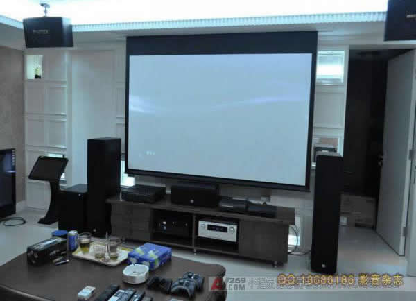 一套以JBL音箱為主的家庭影院配上愛普生的TW4500加上經科電動高清幕布,效果非常不錯!同時配上了一套馬蘭仕的卡拉OK音箱組成了另一套卡拉OK系統! 卡拉OK觸摸屏及威力登超低音炮和JBL音箱L880落地箱 電視墻全景 JBL LC1環繞和愛普生TW4500家用投影機 非常巧妙的把幕布桿隱藏在天花中。。。