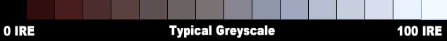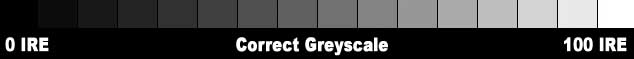 灰階校正是等化在不同亮度下,從非常黑(0 IRE)到非常白 (100 IRE)的灰色到標準的色溫 6500度Kelvin或6500K。 6500K色溫是純正的訊號,它沒有包含任何顏色資訊。它是純黑或是純白或是兩者之間的灰色。6500K通常被指定為白天的陽光色溫,因為它是在北美正午時的色溫。假設你的電腦顯示器的灰階顯示相當準確,一個完美的灰階看起來應該像這樣: