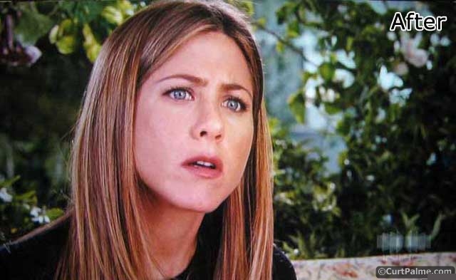 假設你現在用的監視器有足夠正確的灰階,第二張照片看起來應該比第一張好很多。請注意第二張照片裏,Jennifer Aniston's 臉不在有紅/藍色偏,以及色彩更艷麗,對比更好。影像單純來說看起來就是更突出。經由適當的灰階校正,影像會更有衝擊感,通常會有更立體的感覺,顏色會更自然,暗部細節也更明顯。整個畫面也更明亮,甚至還不用動到對比控制。如前面所說Sony G90是建議售價落在$40,000 專業級的CRT投影機,即使如此,用原廠設定的6500K還是離完美非常遠。大部份顯示器則更糟!