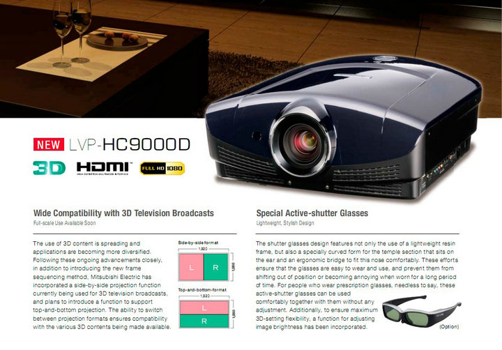三菱hc9000也采用了SXRD顯示芯片組,具備240Hz的驅(qū)動,使用主動快門式的3D顯示方式,將在2011年1月上市,歡迎訂購。