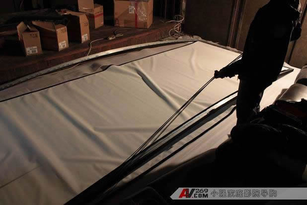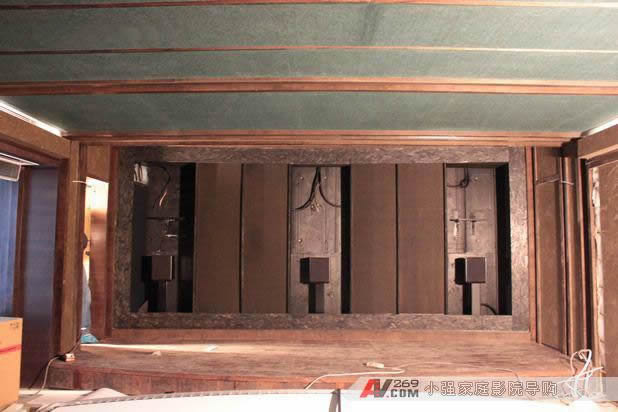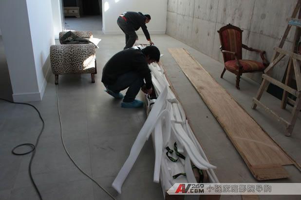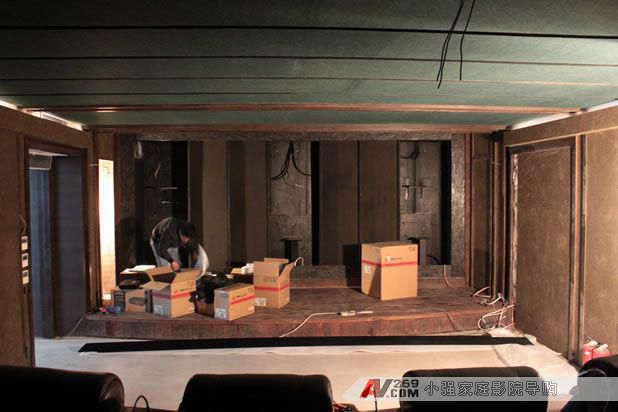弧形幕后面需要隱藏安裝三只MK S150音箱 正在拆包裝箱了