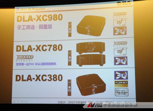投影機新品分別為DLA-XC380、DLA-XC780以及頂級的DLA-XC980,將在2011年1月初發售。 這幾三款新機型采用對稱式設計,鏡頭被設定在正面的中心位置,輸入端口被安置在機器的后面,專為靈活定位以及更多安裝選項而考慮的新外形設計 ,亮光黑色外形是所有新商品的標準。