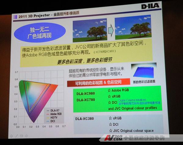 JVC DLA-XC780和DLA-XC980的設計達到了THX 3D認證標準,確保用戶即使在家庭中也能享受到專業認證影院的畫質。此外,新機型的設計也達到了ISF認證并且包括ISF CCC的專業校準和94種智能幕布效果,最大限度的幫助用戶根據周圍環境優化影像效果;7軸CMS色彩管理系統的增加將允許用戶實現進行更多色域顯色的調校。