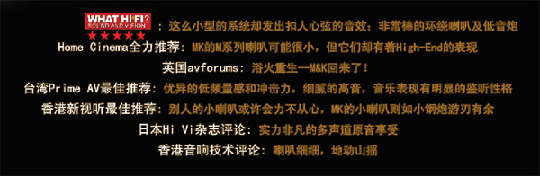 家庭劇院系統進入藍光時代,音效跟DVD世代相比,提升非常多。購買書架型的多聲道喇叭,心中難免產生喇叭會不會有‘力不從心’的疑慮。不過世事無絕對,這些道理在別的喇叭講得通,但是面對MK就不能用一般的經驗法則來看它。因為它們的產品總有許多出人意表的聲音,更有其他多聲道喇叭沒有的制作理念,M系列就是為了小空間使用而誕生的產品。