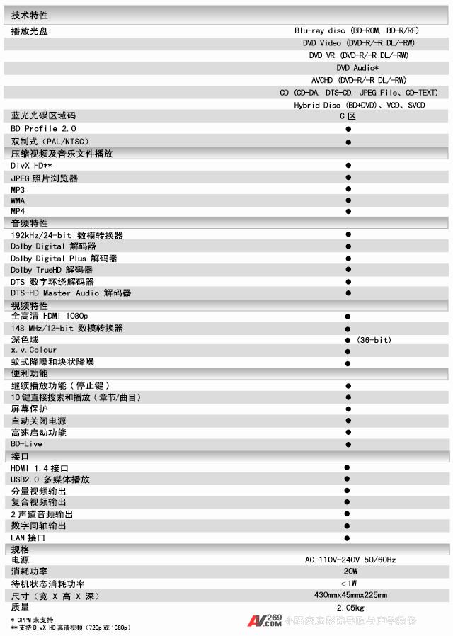 在外觀上,先鋒BDP-4100-K/G可謂時尚典雅,它延續(xù)了先鋒系列產品的設計風格,分別有尊貴香檳金和睿智儒雅黑,同時更人性化方便用戶進行整體家居的協(xié)調搭配。BDP4100搭載了DivX HD技術,支持多種主流高清視頻格式。憑借DivX HD強大的高清流媒體處理技術,您只需要將存儲著高清視頻的移動設備與USB接口連接,即可輕松實現720p乃至1080p全高清畫質的播放效果。它不但支持藍光光碟,而且向下支持DVD、CD等傳統(tǒng)光碟的播放。148MHz/12-bit 的視頻處理技術和192KHz/24-bit的音頻處理技術,讓這款播放機在畫質和音效方面都非常出色。先鋒BDP-4100-K/G高速2秒啟動,無需長久等待即可操作。