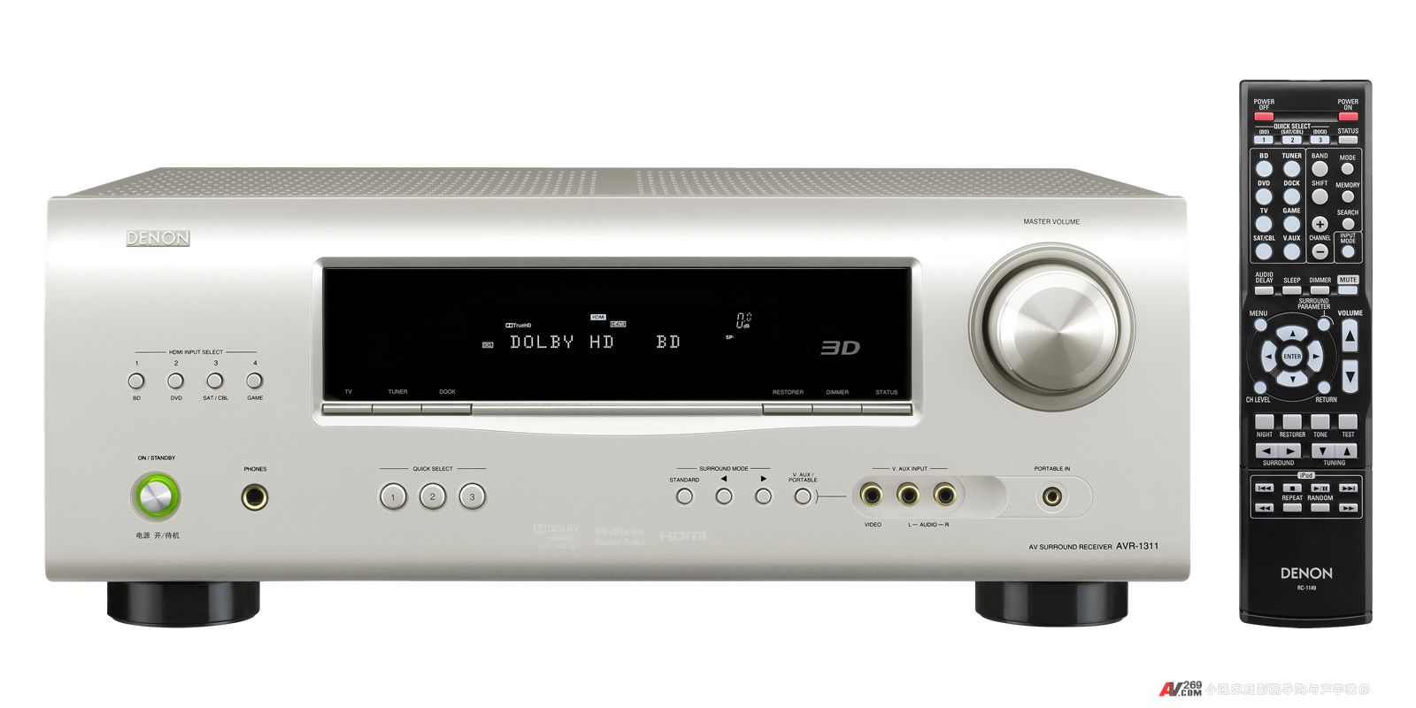 中置聲道揚聲器:雙重驅動器加上2只3寸中音和3/4寸高音單元組成的中置揚聲器