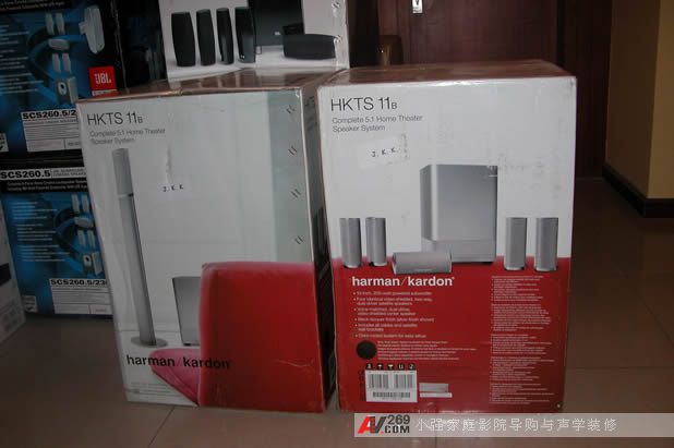 HKTS-11衛星揚聲器:4只相同的具備3寸中音和3/4寸高音的2聲道衛星揚聲器,均經過防磁處理