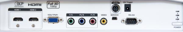 連接性。HD33具有一對HDMI 1.4輸入,一組YPbPr分量輸入,VGA端口、復(fù)合視頻輸入、USB端口、RS232C串口各一個,一個VESA同步端口用于RF發(fā)射器,以及一個12伏觸發(fā)器。沒有S-Video輸入,但我很懷疑會有誰需要用到。另一個沒有的東西是一個機載控制面板——HD33完全依賴于它的遙控器。外殼上的唯一按鍵是開關(guān)機按鍵。