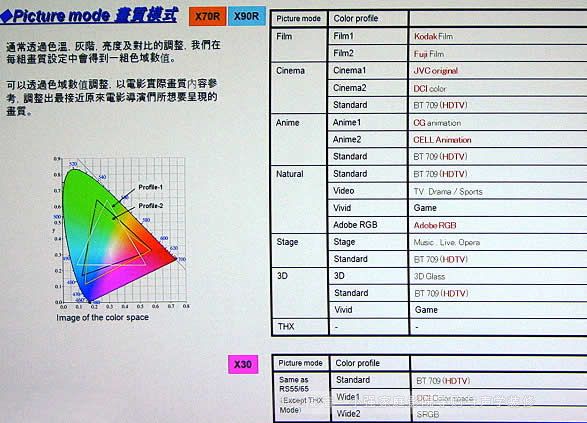 X70R與X90R擁有相同的多組畫質(zhì)模式預(yù)設(shè)調(diào)整,可依據(jù)所欣賞影片內(nèi)容之特性差異,快速選擇最適當(dāng)?shù)念A(yù)設(shè)畫質(zhì)模式觀賞。