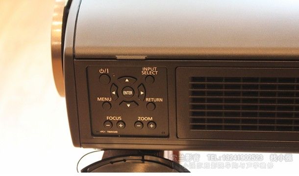 側面的按鍵鈕,菜單、電動距焦、畫面大小調整及信號源選擇都可以通過這里來操作。當然這些在搖控器同樣可以操作。