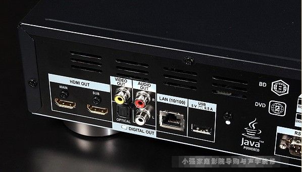 BDP-LX55的兩組HDMI端子接點都有鍍金處理,分別標示為「MAIN」與「SUB」,在選單中可設定為三種不同的輸出模式,包括:兩組都同步傳輸影音信號的TV(Normal)Mode、MAIN傳輸影音而SUB只傳輸聲音的Theater Mode,或者兩者都關閉影像只傳輸聲音的Pure Audio Mode,這是為了排除影像信號對音質的不利影響,用家可隨時依需要切換選擇。小強家庭影院導購網歡迎您!www.2008wb.com
