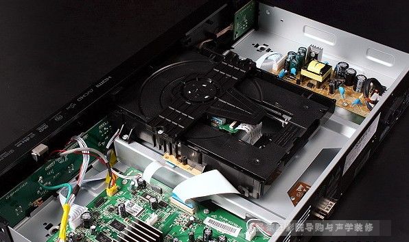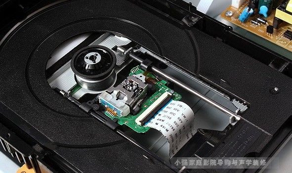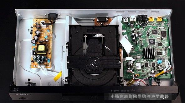這是BDP-LX55的光碟轉軸馬達與雷射讀取頭,由於BD光碟與DVD/CD光碟所需的讀取波長不同,因此配有兩個不同的雷射頭,BD使用其中之一,DVD/CD則為單頭雙焦點設計。小強家庭影院導購網歡迎您!www.2008wb.com