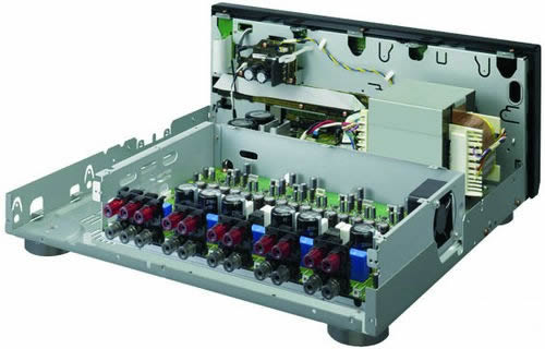SC-LX85的后級放大部分位于機箱的底部,并且采用獨立的箱體區分出來,與數碼部分完全隔絕