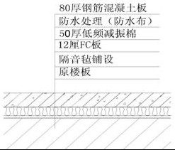目前的住宅設計中,樓板采用的做法多是混凝土樓板加抹灰面層。由于混凝土樓板剛性強,減振效果差,因此撞擊聲隔聲很差。撞擊聲隔聲指的是樓板對樓上的腳步聲、孩子的跑跳聲、拖動家具的滑動聲等因撞擊發聲的隔絕性能。按現行《民用建筑隔聲設計規范》GBJ118-1988和《住宅建筑規范》GB50368-2005(全文強條)“7.1條噪聲與隔聲”規定,住宅樓板撞擊聲隔聲指標Lpn,w應小于等于75dB,而混凝土樓板的Lpn,w都在80dB以上,因此,大多設計院按混凝土樓板設計的民用住宅,其樓板隔聲都無法滿足影院的使用。住宅設計中提高房間隔音量