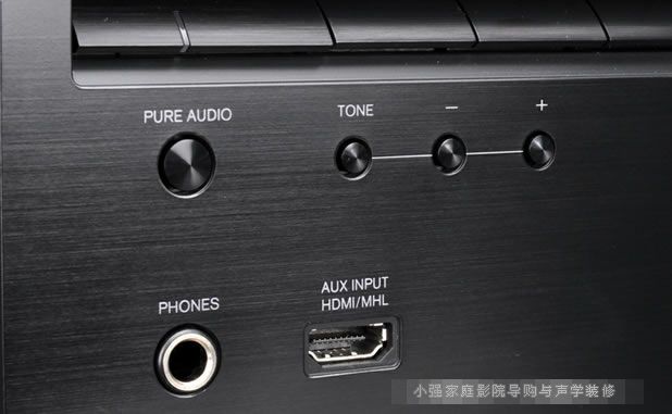 前面板最顯眼的設計莫過於圖中成排的訊源選擇按鍵,能方便使用者切換訊源,而這也是ONKYO環繞擴大機設計別具特色之處。歡迎您光臨小強家庭影院裝修網www.2008wb.com