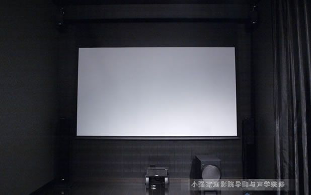 在這兩米八的寬度下可以容下100寸菊地幕布可謂奇跡!正因為采用深色系并沒有感覺到空間的壓抑可謂完美的達到了環境和設備的搭配。