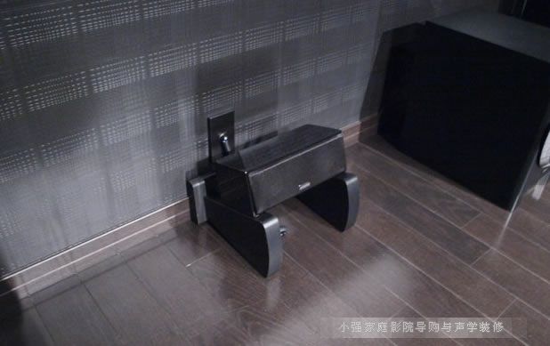 在這深色系家庭影院中你會想到采用了7.1聲道系統嗎?更重要的是并不是常規的7.1多聲道,而是在前置主音箱上方增加了一對增高音箱已提高整體聲場密度。在不能做透聲幕布的情況下這應該是最好的實施方法了!