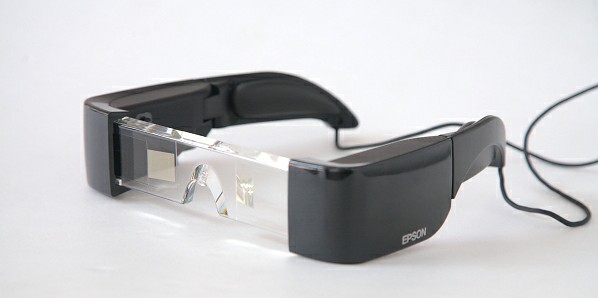 還記多年以前七龍珠卡通(漫畫)中,賽亞人戴在左眼上的「戰斗力偵測器」嗎?面對敵人的時候,戰斗力數值會顯現在眼鏡鏡片上,卻不會遮蔽視線。然而夢幻逸品不可得,但您還是有機會一圓夢想!這次要介紹的是Epson公司推出的Moverio BT-100 3D智慧眼鏡(以下簡稱BT-100),利用半透明反射鏡可以折射影像光源,又可以讓光線穿透的特性,戴上BT-100就好像戴上淡色太陽眼鏡,還是可以看見前方的景物,開機之后立刻搖身一變,成為頭戴式顯示器,更棒的是它具有高度機動性,內建電池可以隨身攜帶,非常適合長途旅行使用。