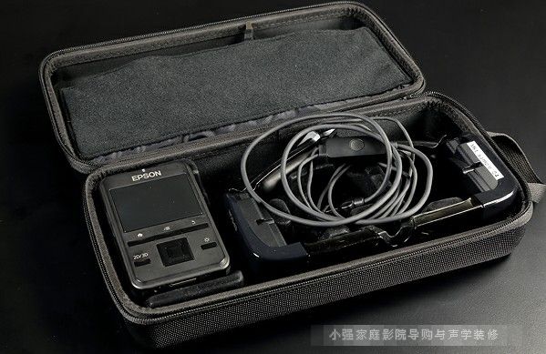 BT-100的外型有點像太陽眼鏡,光源和投影晶片設計在兩側,所以眼鏡看起來厚厚的,不過重量沒有想像中來得沉重。