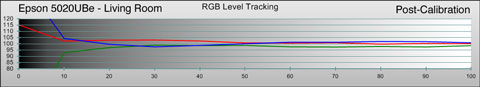 然而,5020UBe的色彩性能真正讓人驚訝的是Living Room模式。除了將絕對色溫控制選項從7500K調整到6500K之外,在沒有任何其它調整的情況下,我們獲得了這樣一個白平衡: