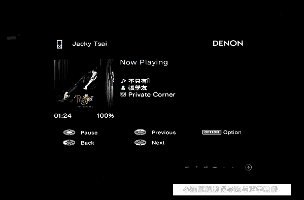 接著嘗試以手邊的iPhone5連接至USB端子,AVR-4520CI會自動讀取內存音樂資料,可以依據專輯、表演者、歌曲等分類來選擇想要播放的曲目,播放時也會顯示專輯封面與相關資訊,整體操作流暢,反應速度還不錯,可以顯示中文,偶爾有掉字的狀況,還好不嚴重不影響判斷。先播放Bon Jovi的「Greatest Hits」專輯第8軌「I’ll Be There For You」,AVR-4520CI的聲音聽起來直接爽朗,主唱沙啞嘶吼的嗓音細節豐富,完全沒有被軟化的無力感,充滿搖滾的硬派作風。改聽CNBlue的新EP專輯「Re: Blue-EP」,這個來自韓國的四人男子樂團曲風明快,在AVR-4520CI上聽來一洋細節豐富,而且低頻相當飽滿。