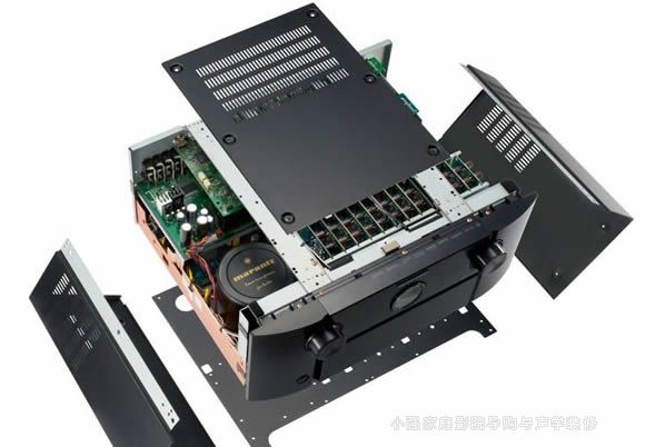在電路設計上,AV8801也運用了許多Hi-End級的設計思路,例如模擬輸出部分放棄使用OP放大器,采用了分別以I/V、低通濾波器設置2個回路的雙HDAM,在最終的輸出緩沖放大器中還設有  最新設計的HDAM電路。這個Marantz所獨有的HDAM(High DefintionAmplefer Module)高解析力放大模塊具有寬廣的頻率響應、負反饋量低、響應速率高等優點,對音質改善有直接的幫助,能將高頻伸延性完全發揮。為使音頻的真實還原,設計上還降低電流反饋電路的反饋阻抗,實現了電路的更高速化。