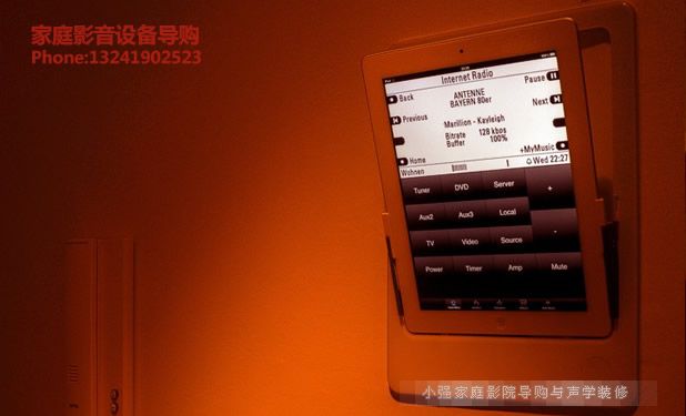 整個影音的操控拋棄了大大小不的搖控器,而使用了智能控制系統(tǒng),為方便使用采用兩種方式來操作,可以用Mini PAD操控,還可以用RTI提供的一款多功能控制器,尤如一款電器的普通搖控器,只是他有一個更大的顯示屏罷了。