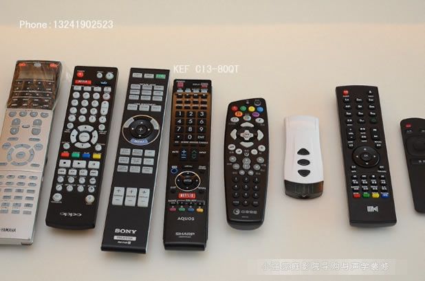 本套系統所用的全部搖控器。如果不熟悉的朋友過來還真是有點迷糊,而擁有一個智能影音控制系統就顯的比較重要了。