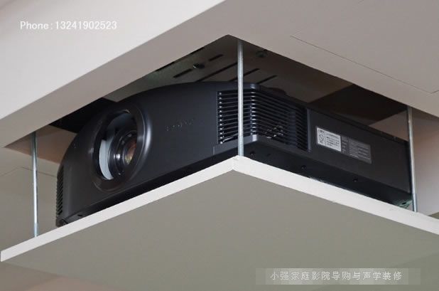 為了保證客廳空間的整齊簡潔,投影機也采用電動吊架方式,收起來的時候可以隱藏在天花之中。當然你需要足夠高的吊頂空間喲。