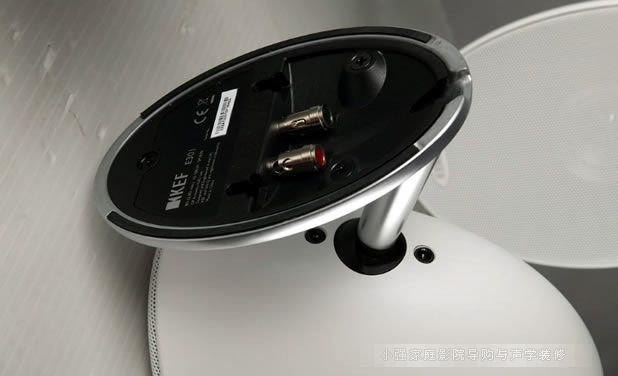 設(shè)在腳架底座的是原廠特地為該系列設(shè)計(jì)的彈簧按壓端子,不過值得注意的是不像一般衛(wèi)星喇叭,E305搭載的彈簧端子一點(diǎn)都不陽春,除了是作工精良的金屬端子,還能夠容許較粗線徑的喇叭裸線,對(duì)於安裝上有一定程度的便利性。