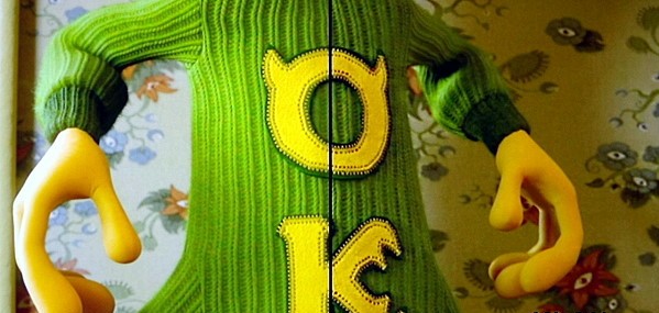 怪獸身上毛衣的細節(jié),請比對左右兩側(cè)毛線的細節(jié)與立體感,「OK」兩字邊緣的縫線也有更鮮明的刻畫。