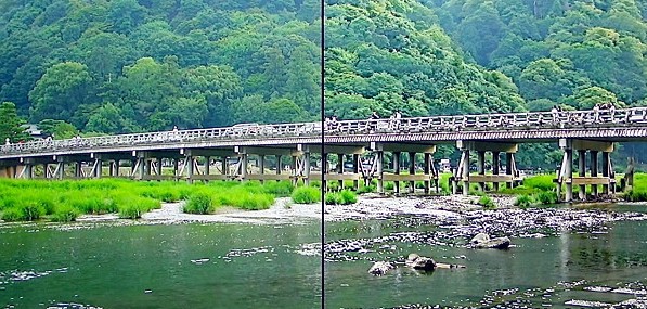 同樣地,在這個畫面遠處山巒樹木枝葉的立體感、橋梁側(cè)面及欄桿的細節(jié)、河面的水波與植物,全都有鮮明許多的描繪,明暗之間的動態(tài)范圍也顯著擴大,就好比照相時所使用鏡頭提升了好幾級一般。