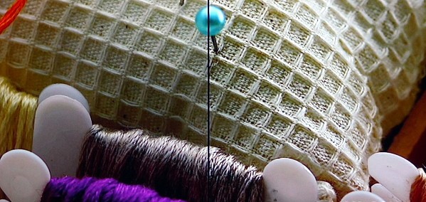 類似的感受也出現(xiàn)在這個針線的特寫畫面,中央上方大頭針頂部的塑膠圓球,右側(cè)經(jīng)過Darbee處理者有更渾圓的實體感,底下大頭針插入的小布包,格子狀毛線的編織交錯都清晰許多,中下方纏繞在卷線板的棕色棉線,分隔線左右兩側(cè)的細節(jié)與質(zhì)感對比也無須多言。