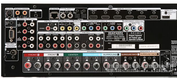 也可以在這里分配HDMI接口,這樣一來在使用需要更改接口的時候不需要將功放搬出來再從一大把接線中尋找接線,非常的便利。