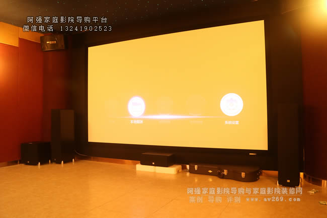 采用150寸畫框幕布基乎占用整個高度,而下面的中置音箱直接落地擺放,落地主箱上方的卡拉OK音箱等待年后再安裝。