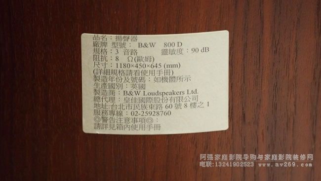 主聲道:B&W -800D