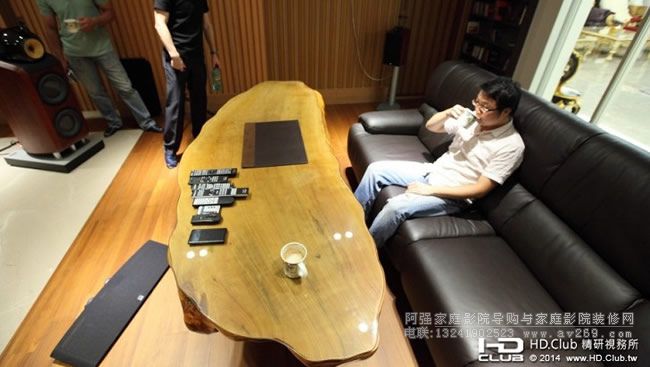 一行人才赫然發現原來這張茶幾是以臺灣的造型去設計的~海灣造型的全牛皮沙發鬆軟舒適。在這樣優質的環境下欣賞影片、聽音樂。午后再來杯咖啡加上幾塊小點心,人生到了這樣的境界真是夫復何求。