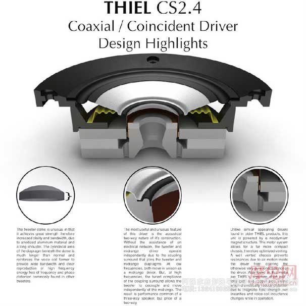(10).超奧(THIEL,美國)1977年創辦于肯德基州的揚聲器廠,一向堅持追求忠實的原聲重放,一貫秉承其優良傳統和獨有風格,1983年以來用連貫性聲源(Coherent Source)方式設計,成為同類揚聲器系統的翹楚,通過單元設計、音箱結構及分頻器等的不斷研究改良,以聲音準確、分析力卓越、動態充分、瞬變快速的中性音箱而成舉世公認的高級音箱之一。