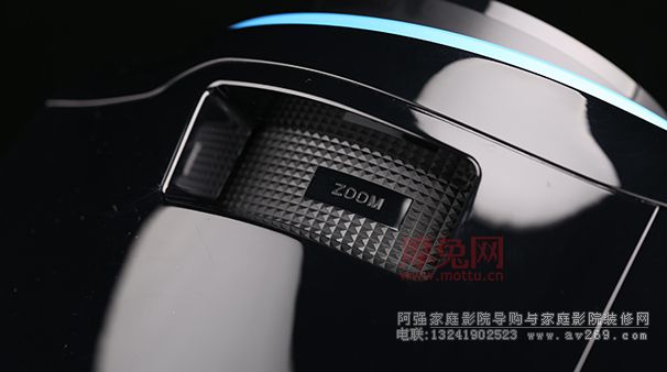 與多數家用投影機的白色外觀不同,IN8612采用了全黑色外形設計,鏡頭處的一圈藍色光圈猶如畫龍點睛般為整體設計帶來一絲靈氣與動感,讓我不由得聯想到了跑車車燈。除了背部之外,IN8612前、左、右三面都設計有散熱孔 ,大面積的散熱孔帶來極佳的散熱能力,這一點在我們后面的體驗中得到了驗證,不過這樣的設計也讓會產生容易進灰以及漏光的問題。其實這樣有利有弊的設計,關鍵是看消費者怎樣看待了。就我個人來說,對于IN8612這樣的產品肯定是選擇散熱優(yōu)先,然后平時使用時注意防塵。另外一點,原以為有這么多的散熱孔,IN8612的風扇噪音肯定不小,結果一番體驗下來發(fā)現其噪音并不明顯,這樣讓我有些欣喜。