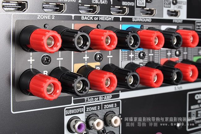 由于出廠時尚未支援Atmos,所以背板端子的標(biāo)示仍然採取傳統(tǒng)形式。