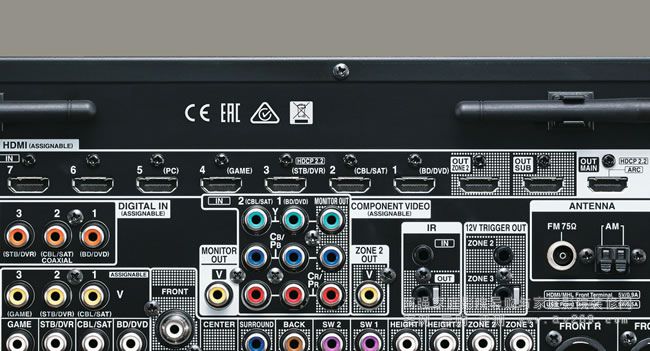 TX-NR3030背板的HDMI端子有七進三出配置,用家的影音設備再多應該都可對應連接。并且本機的HDMI端子不光是數量豐富而已,它們全都對應HDMI 2.0最高的4K/60p規格,而且其中HDMI3輸入與HDMI主輸出還對應HDCP 2.2防拷機制,要知道明年底之前「4K藍光」軟硬體將會推出,而「4K藍光播放機」對應HDCP 2.2防拷機制的可能性極高,假使屆時環繞擴大機的HDMI輸出入端子無法支援,系統配置就會有極大的問題。